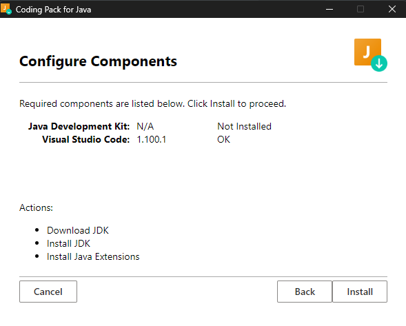 VSCode 공식 홈페이지에서 제공하는 코딩팩을 설치하면 JDK, Extension이 함께 설치된다.